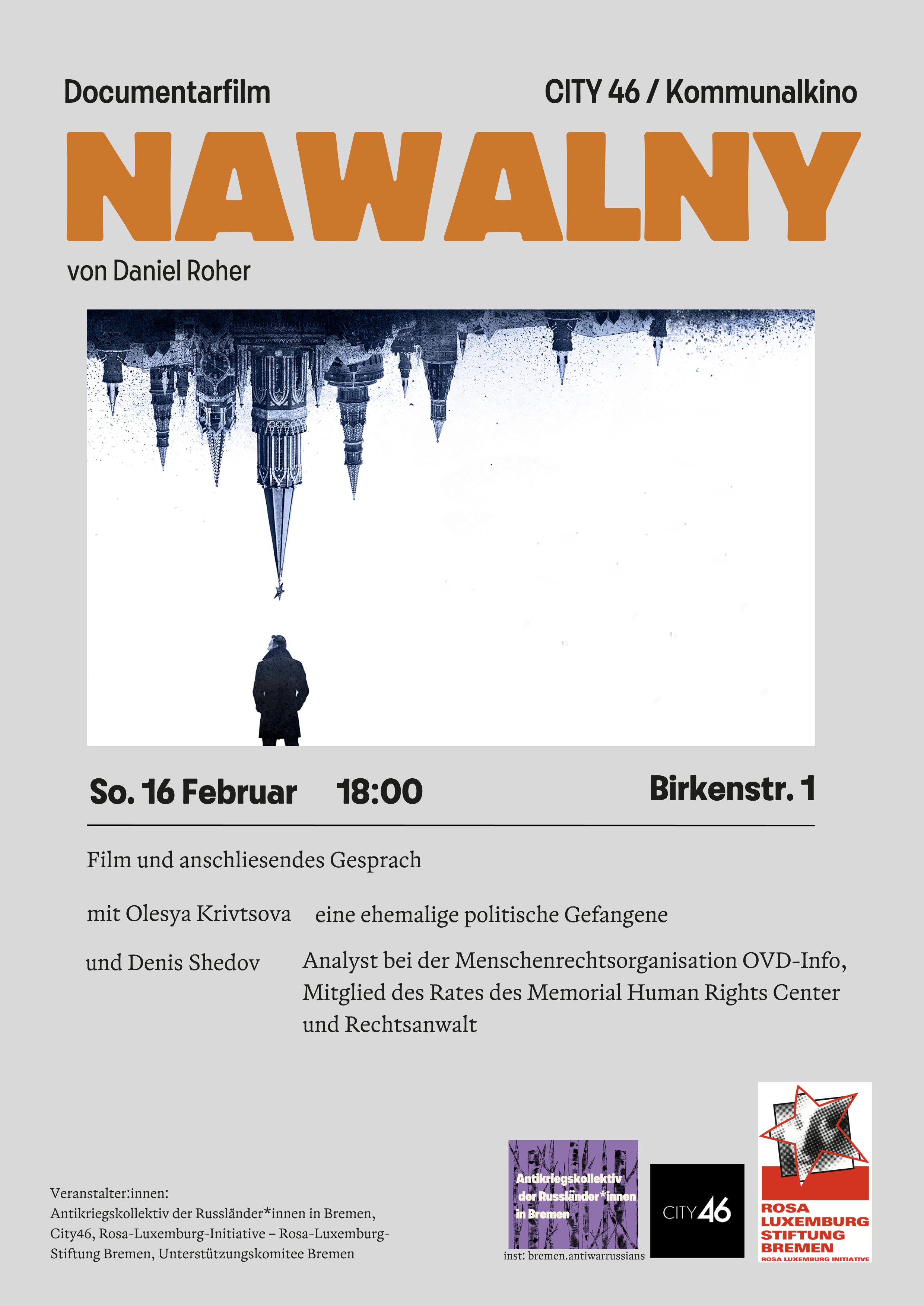 Antikriegskollektiv der Russländer*innen in Bremen, City46 – Kommunalkino Bremen, Rosa-Luxemburg-Initiative – Rosa-Luxemburg-Stiftung Bremen, Unterstützungskomitee Bremen