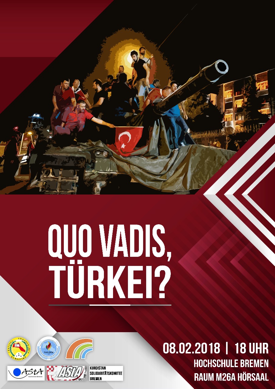 Eine Veranstaltung der Rosa-Luxemburg-Initiative – Die Rosa-Luxemburg-Stiftung in Bremen in Zusammenarbeit mit dem Kurdistan Solidaritätskomitee Bremen und YXK Bremen – Yekîtiya Xwendekarên Kurdistan (Verband der Studierenden aus Kurdistan).