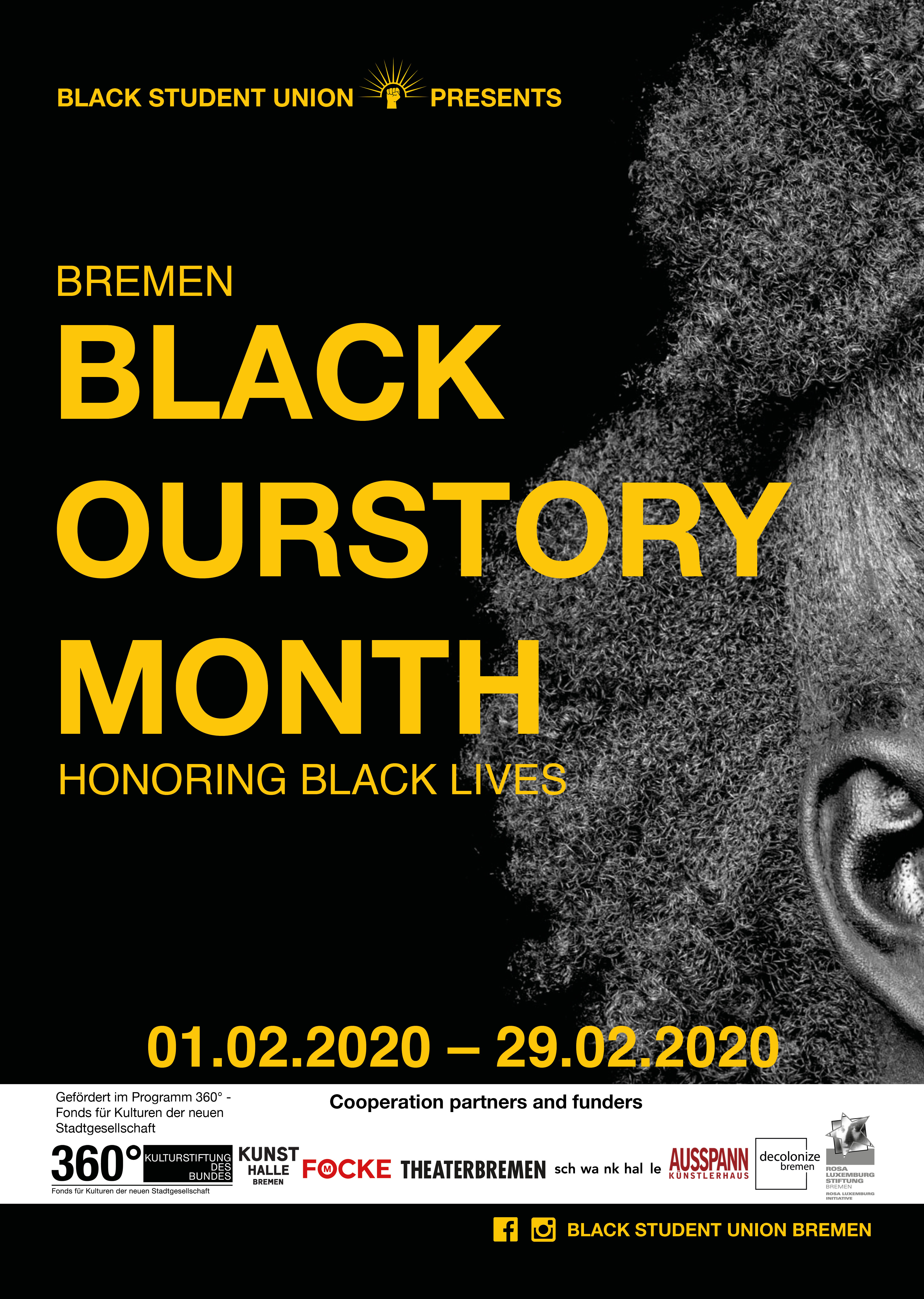 Die Black Student Union Bremen hat beschlossen, den ersten „Black History Month“ der Stadt zu initiieren und ihn in „Black OurStory Month“ (BOM) umzubenennen, um uns auf den Gedanken zu konzentrieren, dass wir als Gemeinschaft jenseits des (Hetero- und Cis) Normativen feiern und all unsere Geschichten ehren wollen.